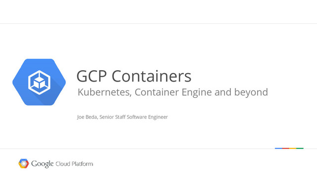 this for ~10 years. • Everything from Search to GCE VMs run in containers. • We launch 2B containers every week • Deep understanding of what it takes to launch, run and manage containers at scale. • We have lots of experience/scars • Core contributor to linux cgroups and Docker libcontainer. • In some ways, we invented the core technology for containers on Linux • Containers are a keystone technology for cluster management systems.