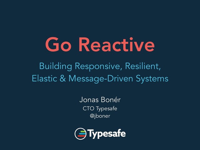 We are seeing a new type of applications emerging to address these new challenges—these are being called [Reactive Applications]. In this talk we will discuss four key traits of Reactive; Responsive, Resilient, Elastic and Message-Driven—how they impact application design, how they interact, their supporting technologies and techniques, how to think when designing and building them—all to make it easier for you and your team to Go Reactive.