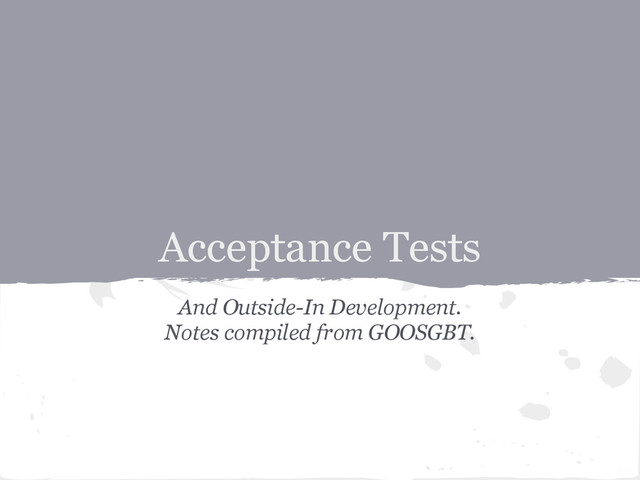 • When we’re implementing a feature, we start by writing an acceptance test... • While it’s failing, an acceptance test demonstrates that the system does not yet implement that feature; when it passes, we’re done. • When working on a feature, we use its acceptance test to guide us as to whether we actually need the code we’ re about to write—we only write code that’s directly relevant.