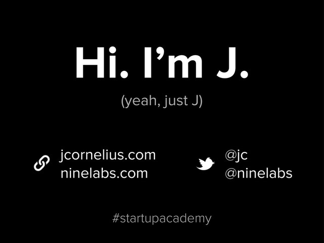 Hi. I’m J. (yeah, just J) jcornelius.com ninelabs.com @jc @ninelabs