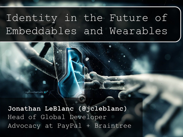 Ways of identifying a person to the technology around them is shifting from antiquated external body definitions, to internal body functions. In this session, we'll explore how the technology behind this embeddable and wearable movement works, exploring vein recognition biometrics, heartbeat identification, and going into embeddable body modifications as sources of identification.