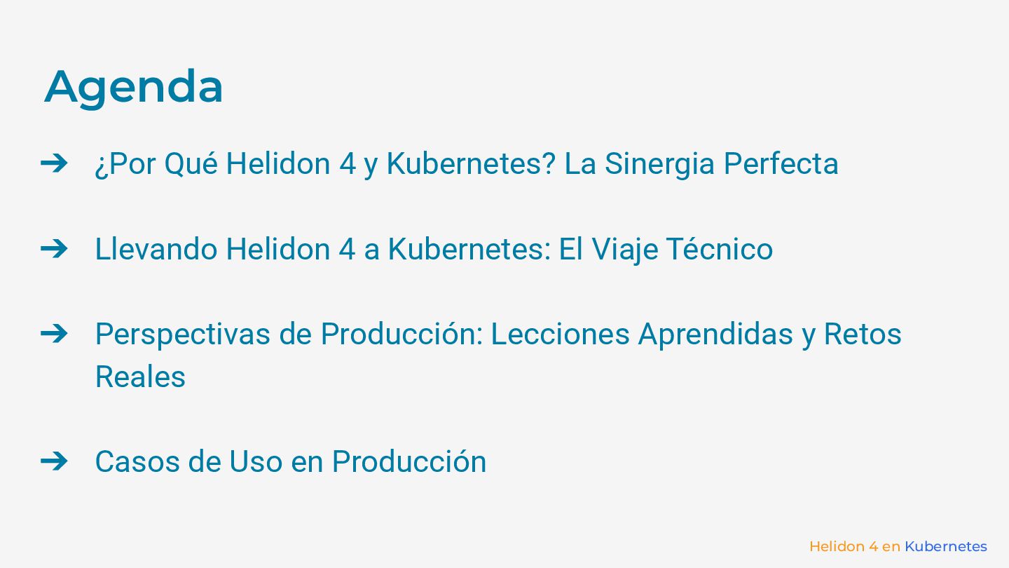 Descubre cómo llevar Helidon 4 a producción en Kubernetes. Exploraremos lecciones aprendidas, retos enfrentados y casos de uso reales con Eclipse MicroProfile, bases de datos y servicios externos. Una charla con insights clave para optimizar distintas cargas de trabajo en el mundo real.