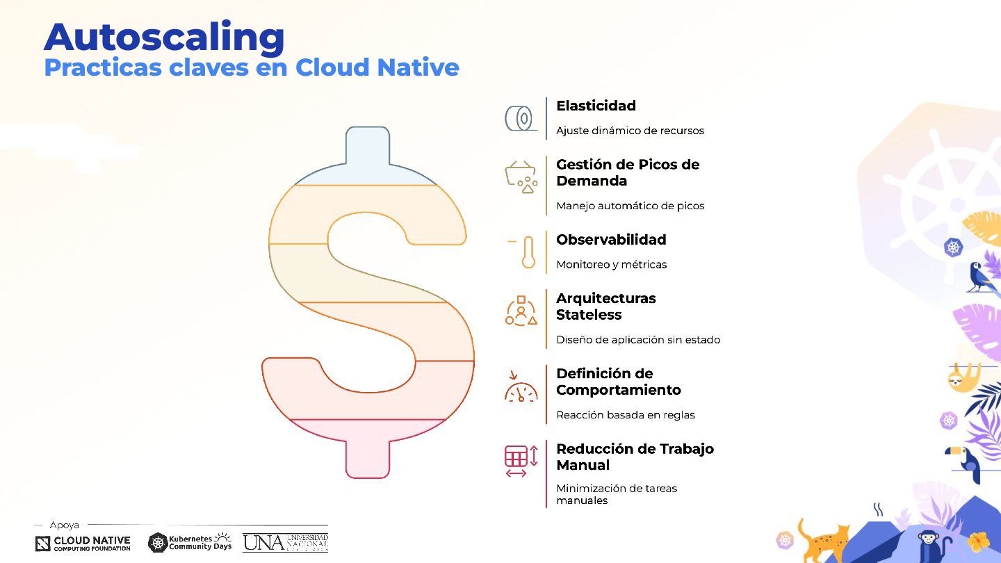 Presentación diseñada para proporcionar una introducción sólida a los fundamentos de la arquitectura cloud-native, abordando las mejores prácticas, la implementación de soluciones serverless y autoscaling, y cómo estas tecnologías permiten la creación de aplicaciones escalables y resilientes.