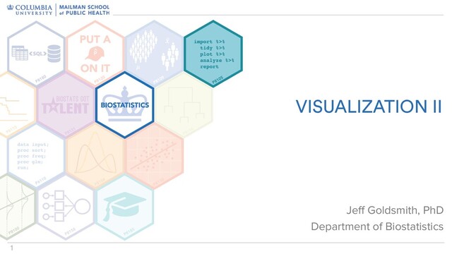 • Advanced graph components – facets, scales, statistics • A graph is built by combining these components • Graphics can be further customized, depending on the goals – Axis labels, axis tick locations / labels, font sizes, graphs themes, color scales, combining panels Using ggplot