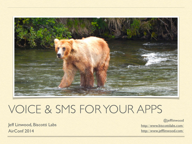 1. VOICE & SMS FOR YOUR APPS Jeff Linwood, Biscotti Labs
