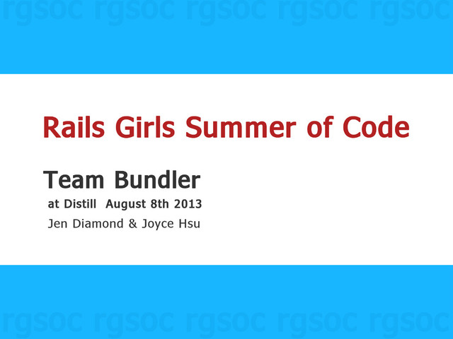 Lightning talk given at the Distill Conference in San Francisco August 8th & 9th 22013 by Rails Girls Summer of Team Bundler: Jen Diamond & Joyce Hsu