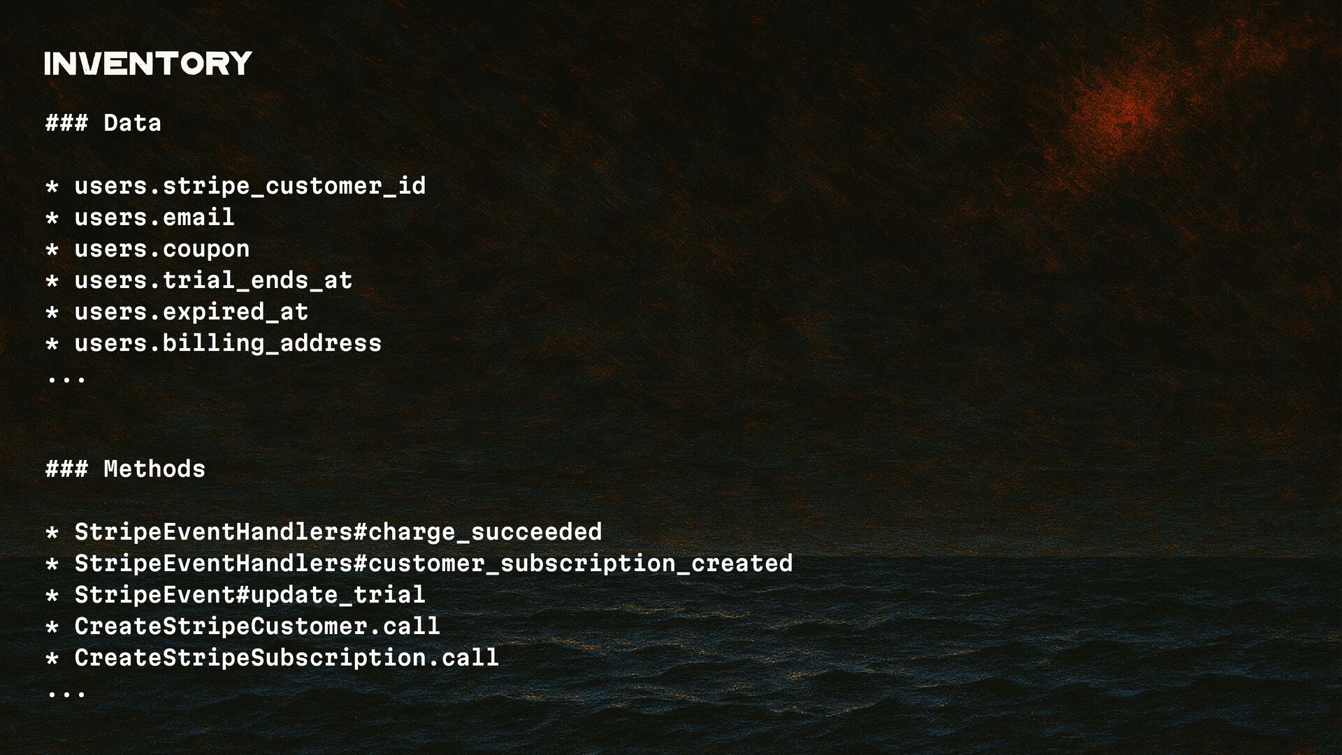 "We're switching to a new CSS framework." "Billing needs to be decoupled from the user model." "The team has decided to change authorization libraries." "We have to refactor that critical data process with low test coverage."