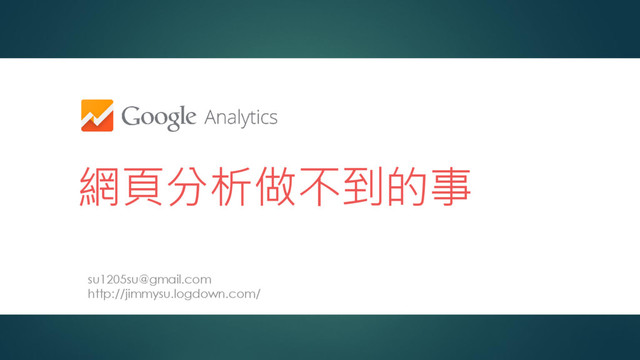 1200 B 商品 200 3 600 贈品 A 商品 600 1 0 商品小計: 1800 全館折扣: -300 使用折價券 -50 運費: 100 應付金額: 1550 ga('ecommerce:addTransaction', { 'id': 1234, 'revenue': 1450, 'shipping': 100, 'tax':0, 'currency': 'TWD’ }); ga('ecommerce:addItem', { 'id': '1234', 'name': 'A商品', 'sku': 'DD23444', 'category': 'Party Toys', 'price': ‘600', 'quantity': ‘3', 'currency': ‘TWD' }); ga('ecommerce:addItem', { 'id': '1234' , 'name': 'B商品', 'sku': 'DD23888', 'category': 'Party Toys', 'price': ‘200', 'quantity': '3', 'currency': 'TWD' }); 實際商品收益 1450 GA產品業績 2400 GA銷售業績 1550 實際消費金額 1550 GA電子商務追蹤碼範例(基本型)