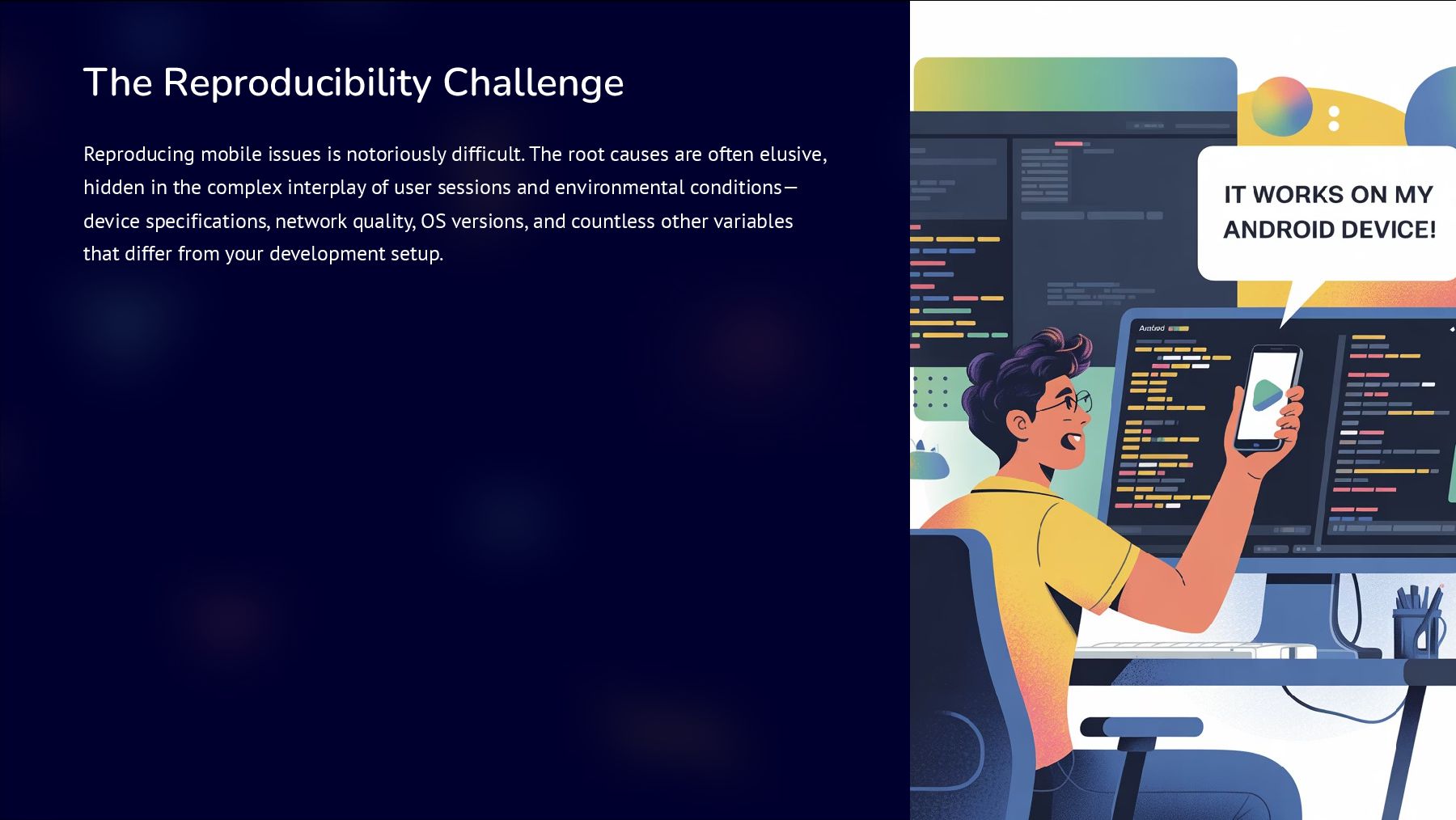 root causes are often elusive, hidden in the complex interplay of user sessions and environmental conditions— device specifications, network quality, OS versions, and countless other variables that differ from your development setup.