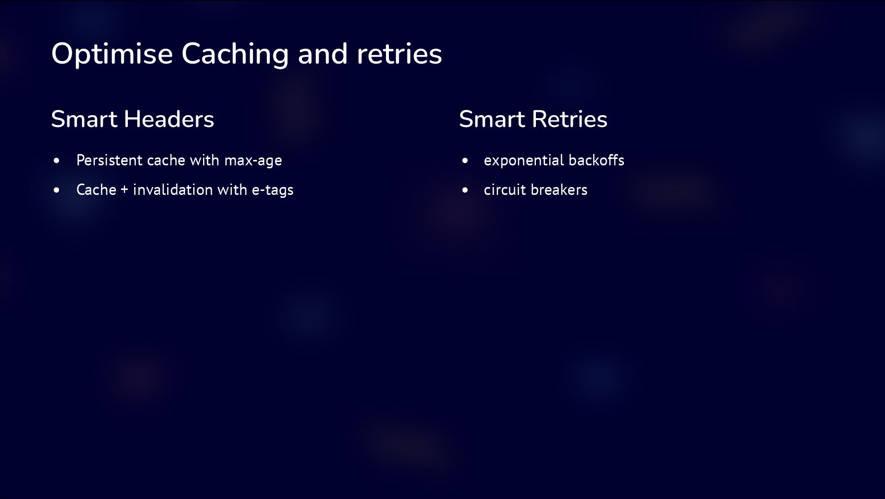Cache + invalidation with e-tags Smart Retries exponential backoffs circuit breakers