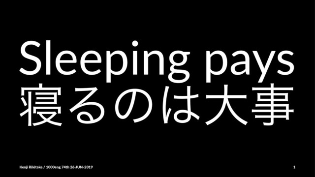 Sleeping pays ৸Δͷେࣄ Kenji Rikitake / 1000eng 74th 26-JUN-2019 1