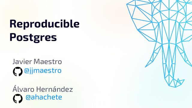 1. Reproducible Postgres ` whoami ` Javier Maestro <[email protected]> 2jotas.com •
