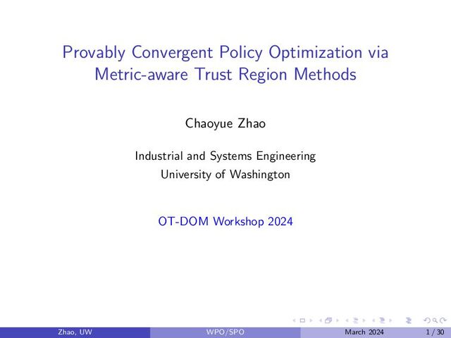 Chaoyue Zhao (University of Washington, Seattle, USA) Provably Convergent Policy Optimization via Metric-aware Trust Region Methods