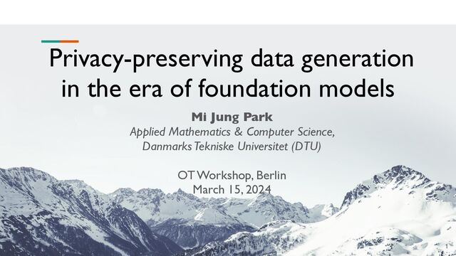generation in the era of foundation models Mi Jung Park Applied Mathematics & Computer Science, Danmarks Tekniske Universitet (DTU) OT Workshop, Berlin March 15, 2024 1