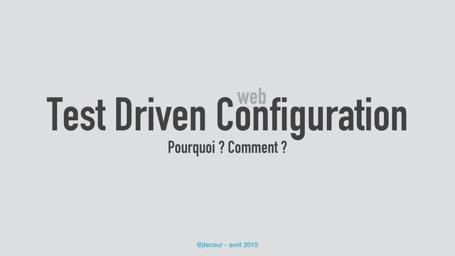 @jlecour - avril 2015 Test Driven Configuration Pourquoi ? Comment