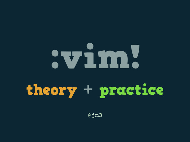 stick shift ~ tao: + minimalism + to know vim is to know unix + editing is programming + vim is everywhere ~ beware “false prophets”: + mouse == OK, arrow keys are fine