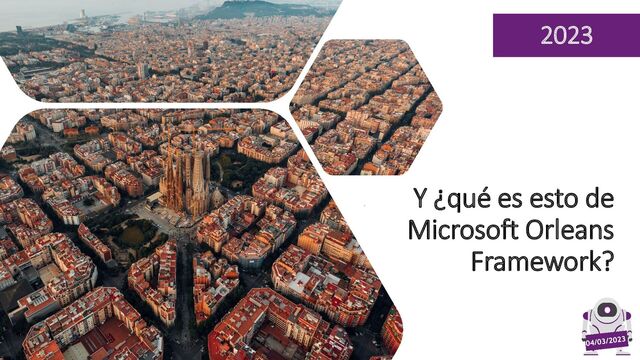 utilizada. Observación Investigación, estudio, análisis, … que aportan puntos de vista e información para mejoras. Documentación Orleans aparece por primera vez en al portal de documentación de Microsoft. Orleans v7 & .NET 7 Se libera la versión 7 con muchos ejemplos para usarlo en Azure. Y entra a formar parte del Core de .NET 7. Verano 2021 Otoño 2021 Invierno 2022 Primavera 2022 Noviembre 2022