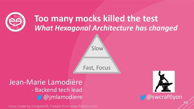 by Freepik, Smashicons, Roundicons from www.flaticon.com /Application /Command RegisterRunningSession RegisterRunningSessionHandler /Domain WeatherProvider(Interface) RunningSession RunningSessionRepo(Interface) /Infrastructure /Http HttpAccuWeatherProvider CurrentConditionDeserializer /Database PostgresRunningSessionRepo Unit/Fast/Small tests Integration Mock No Mock!