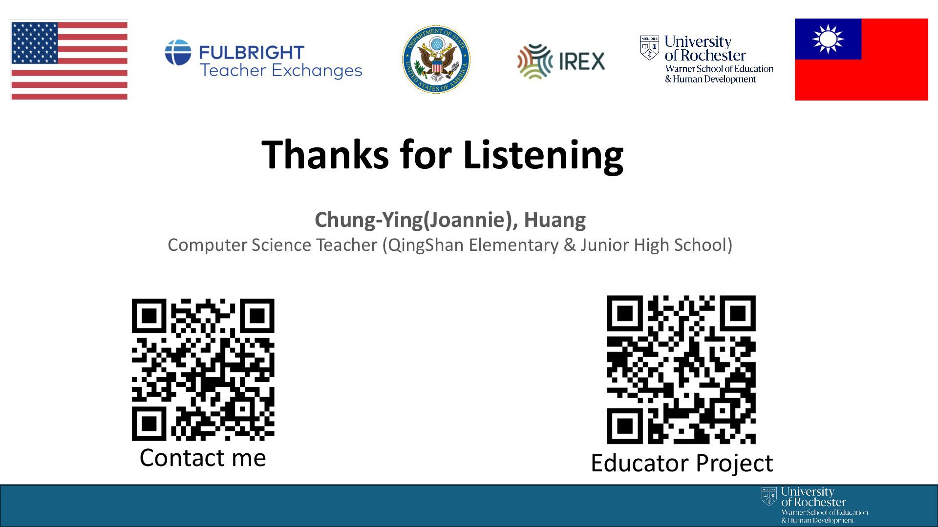 Fulbright Distinguished Award International Teacher 2024-2025 - Educator Project. Within the 4-month program, I dedicated myself to initiating a project that can be implemented in the Taiwan K12 educational system. As a high school technology teacher, I always use project-based learning to inspire students in the classroom to create and innovate!