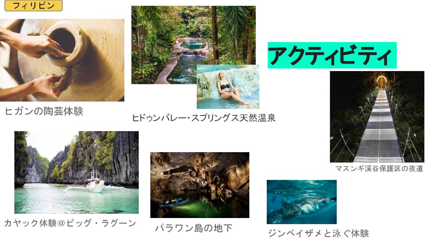 セブ島 セブ州 ビーチリゾート ダバオ 南ダバオ州 治安の良さ、豊かな自然 イロイロ イロイロ州 旧市街地とニュータウンがある ケソン マニラ首都圏 かつての首都、比較的新しい市 フィリピン