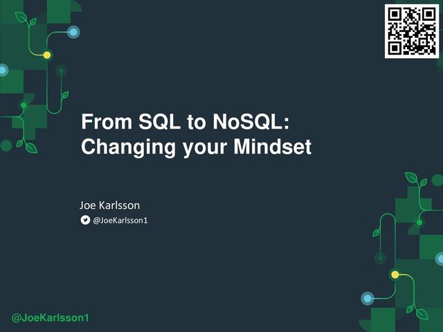 “Software Engineer” ], } twitter: “@JoeKarlsson1”, twitch: “joe_karlsson”, tiktok: “joekarlsson”, website: “joekarlsson.com”, opinions: “my own”, links: “bit.ly/fromSQLToNoSQL”