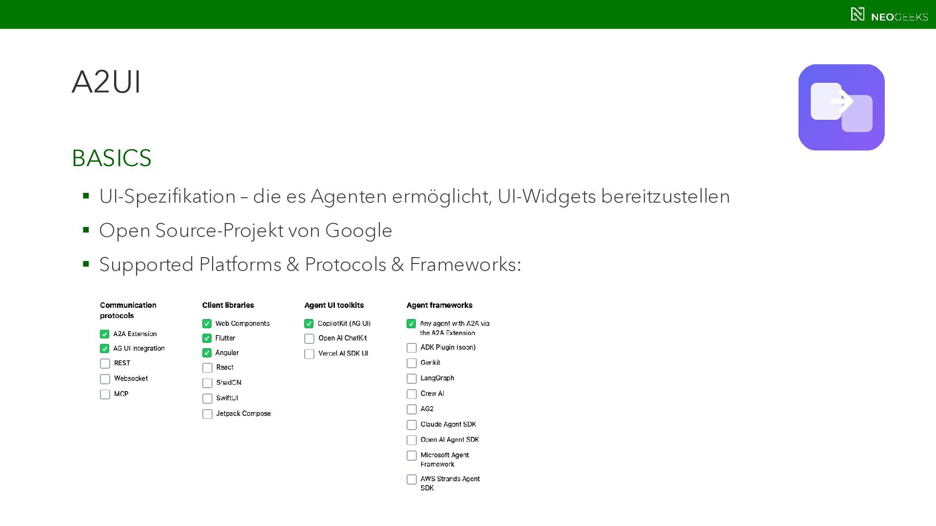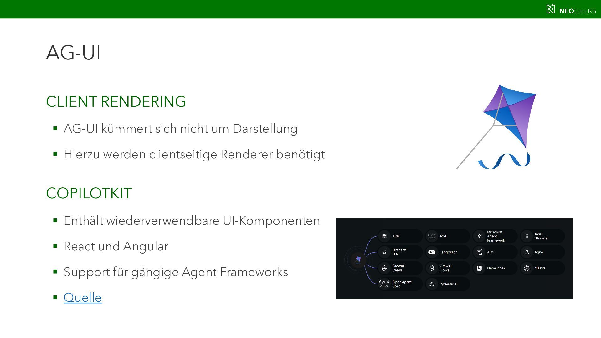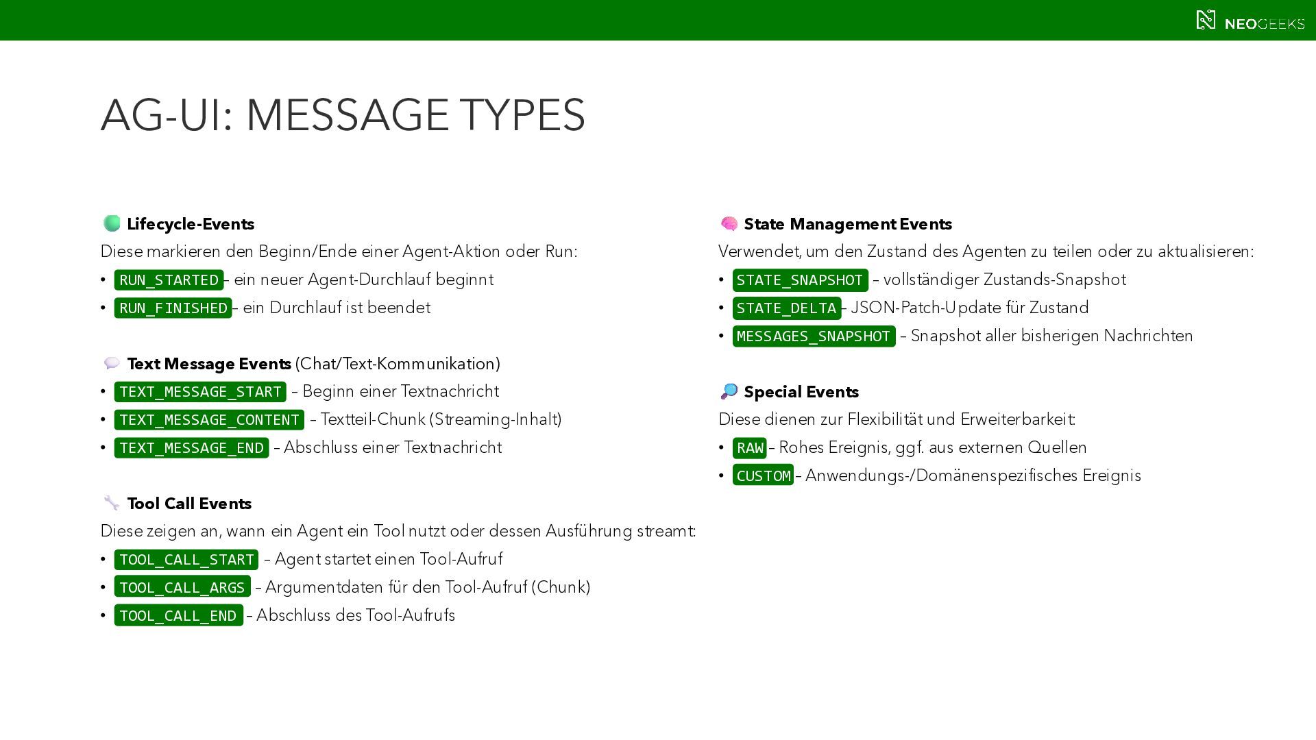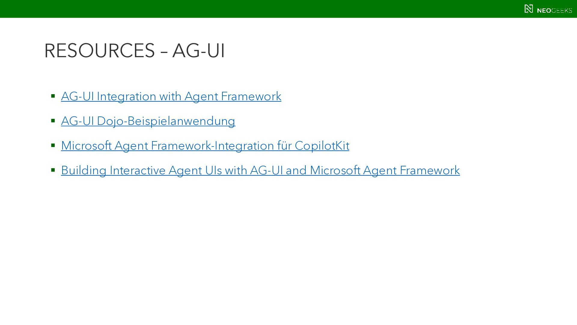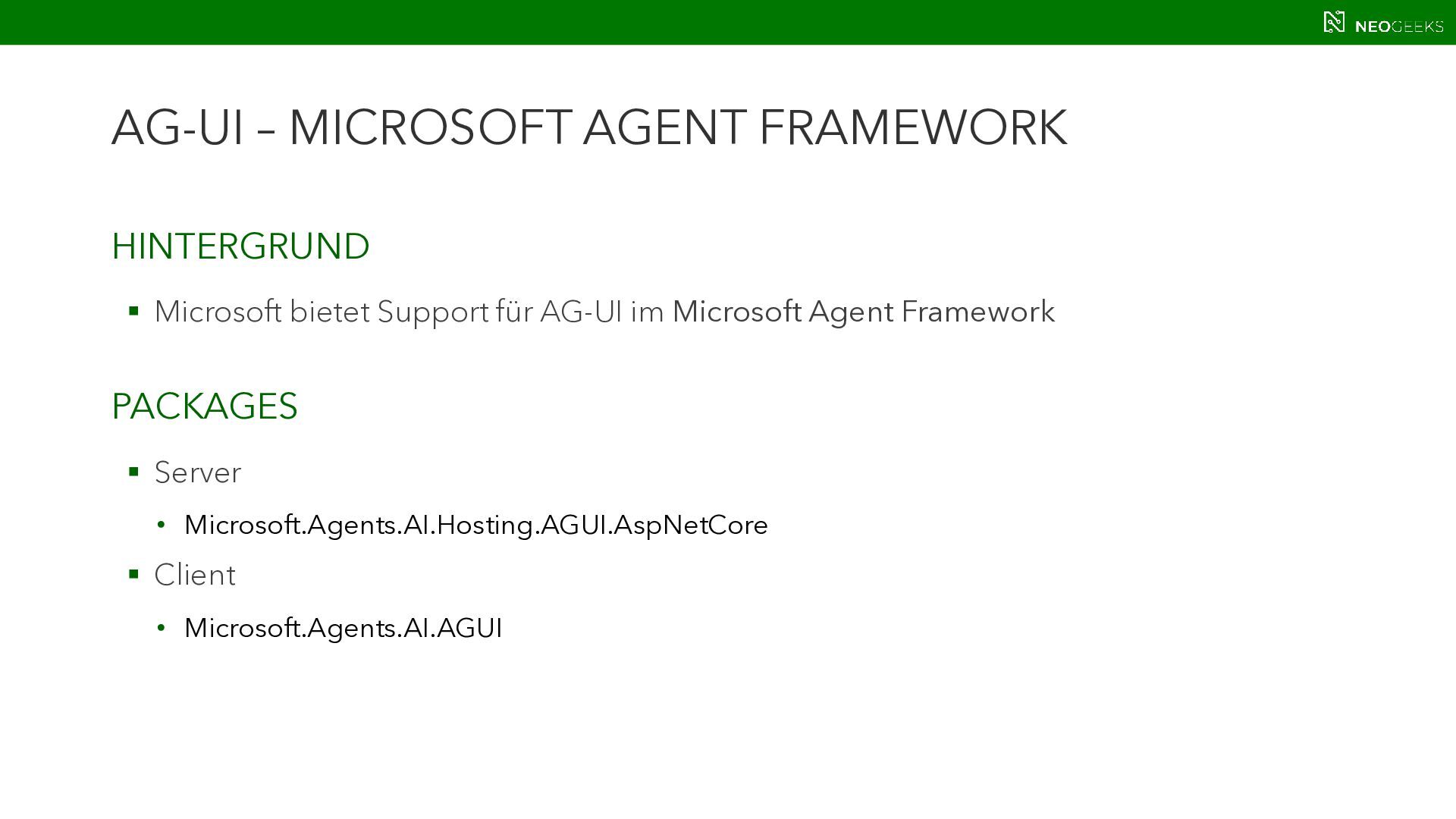 Die Zeiten, in denen AI aus simplen Chats bestand, sind längst vorbei. Heute bildet sich mit AI-Agents ein völlig neues Anwendungsmodell. Und dieses benötigt Benutzerinteraktion. Ob grafische Darstellungen von Modellausgaben oder Benutzerinteraktionen über AI-generierte Oberflächen: Mit AG-UI, A2UI und MCP Apps stehen gleich drei Standards bereit, die AI mit dem Anwender verbinden wollen. Jörg Neumann stellt beide Standards vor und zeigt, wie die Anwendungen von morgen aussehen.