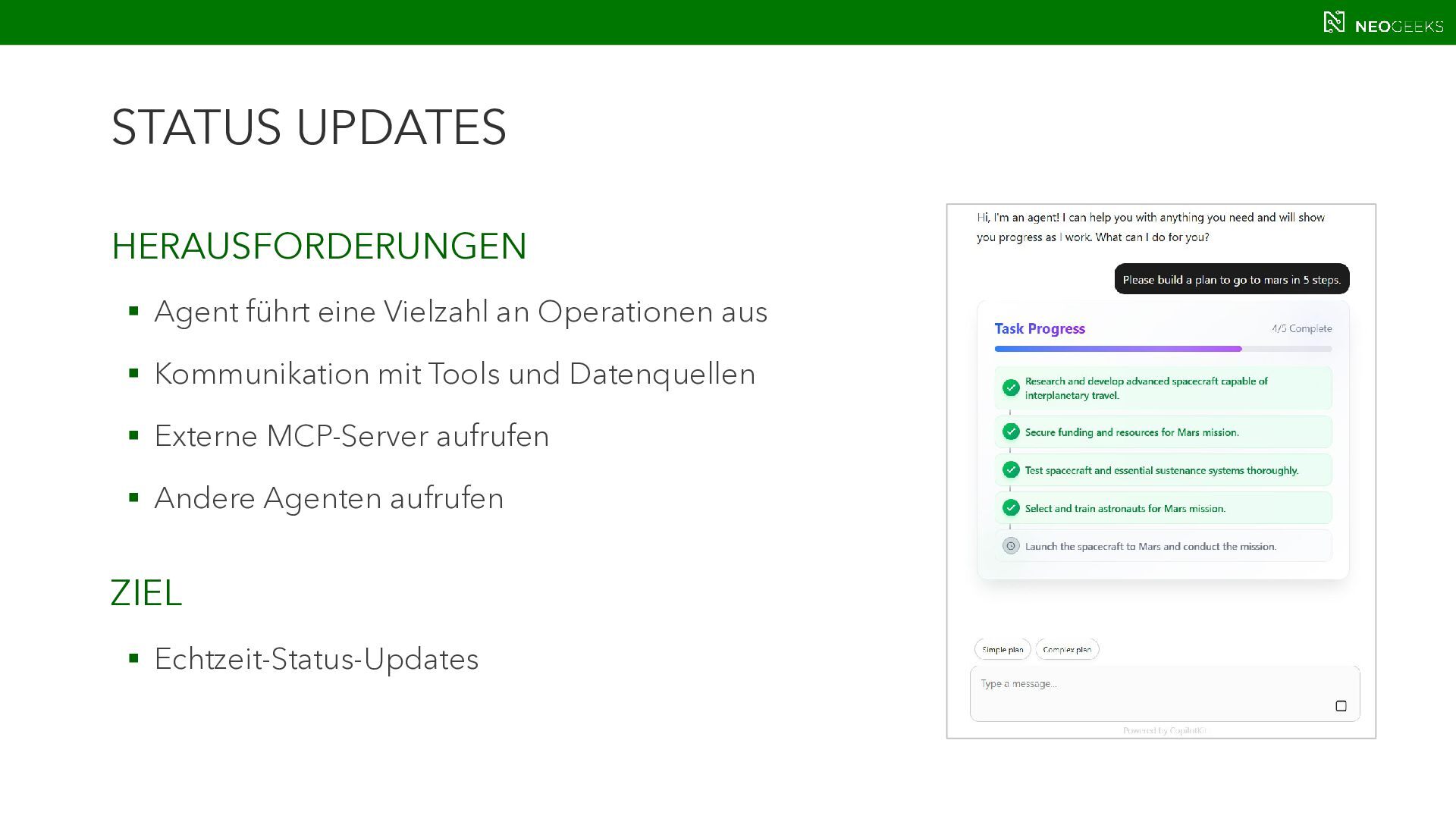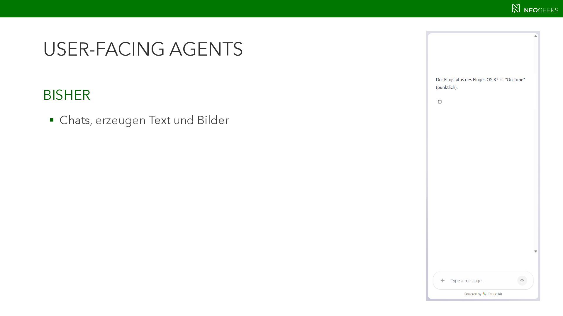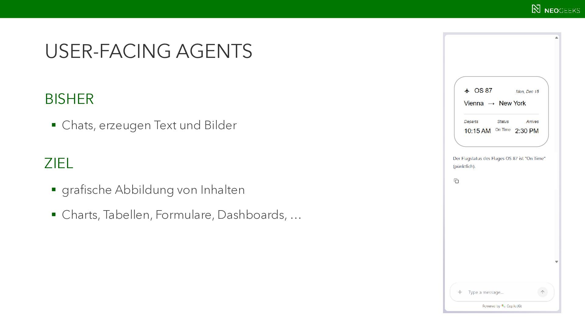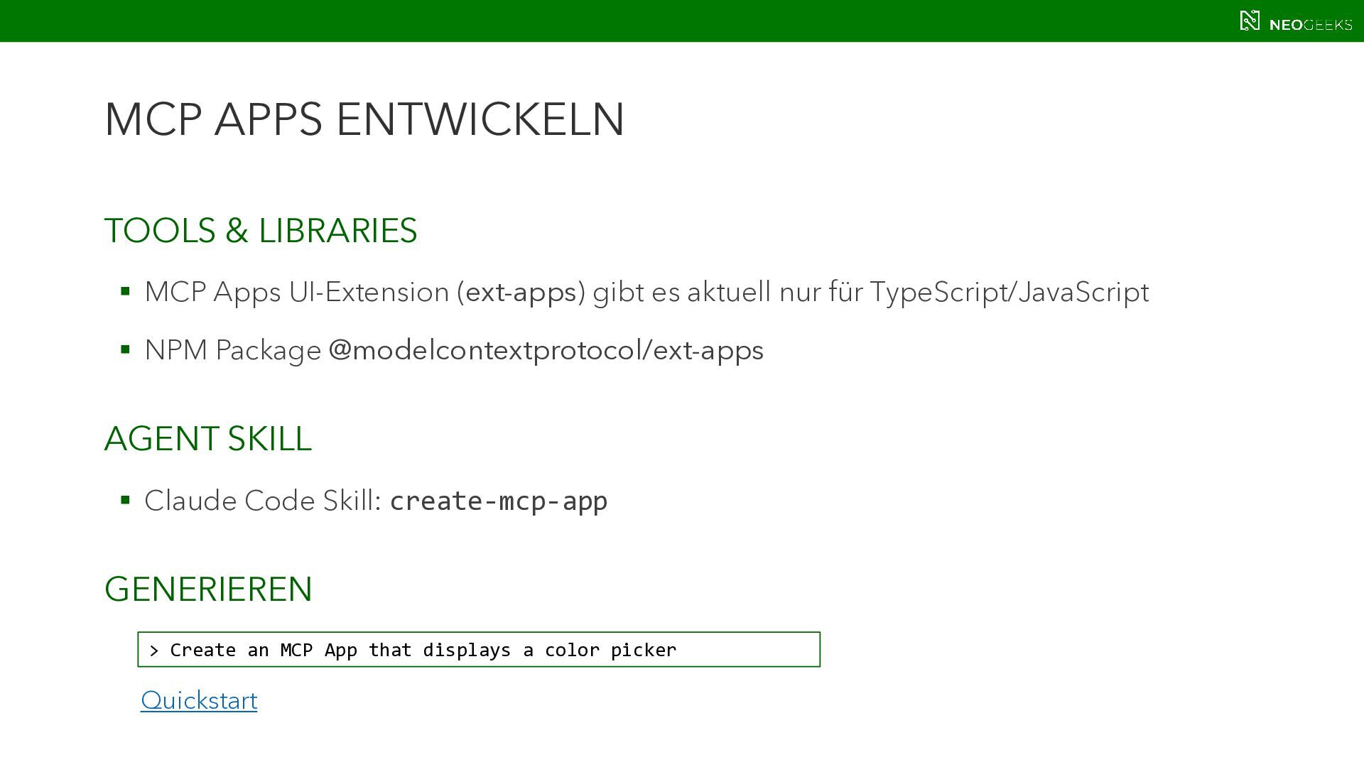 Die Zeiten, in denen AI aus simplen Chats bestand, sind längst vorbei. Heute bildet sich mit AI-Agents ein völlig neues Anwendungsmodell. Und dieses benötigt Benutzerinteraktion. Ob grafische Darstellungen von Modellausgaben oder Benutzerinteraktionen über AI-generierte Oberflächen: Mit AG-UI, A2UI und MCP Apps stehen gleich drei Standards bereit, die AI mit dem Anwender verbinden wollen. Jörg Neumann stellt beide Standards vor und zeigt, wie die Anwendungen von morgen aussehen.