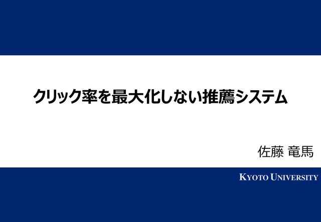 に良い方にシフト Martin Mladenov 近視眼的なポリシーは、生産者が存続し続けることができない均衡にシス テムを追い込むことによって、ユーザーへのサービスを低下させる myopic policies can serve users poorly by driving the system to an equilibrium in which many providers fail to remain viable Optimizing Long-term Social Welfare in Recommender Systems: A Constrained Matching Approach. ICML 2020.