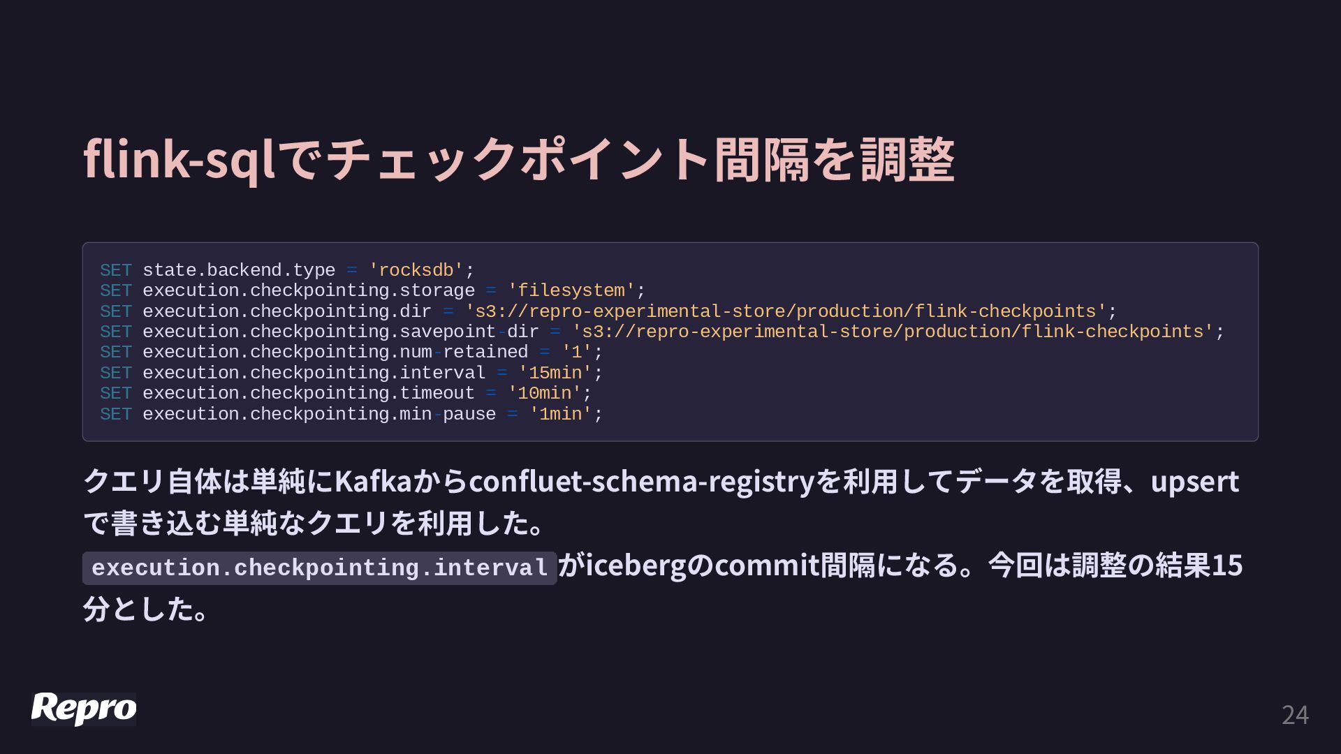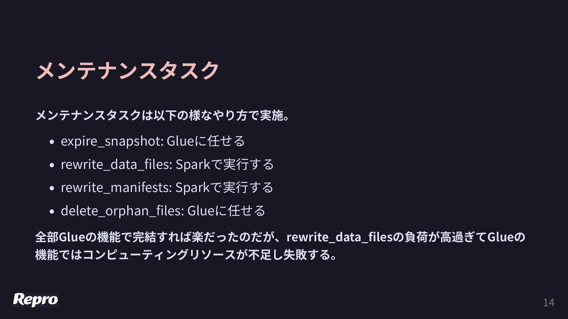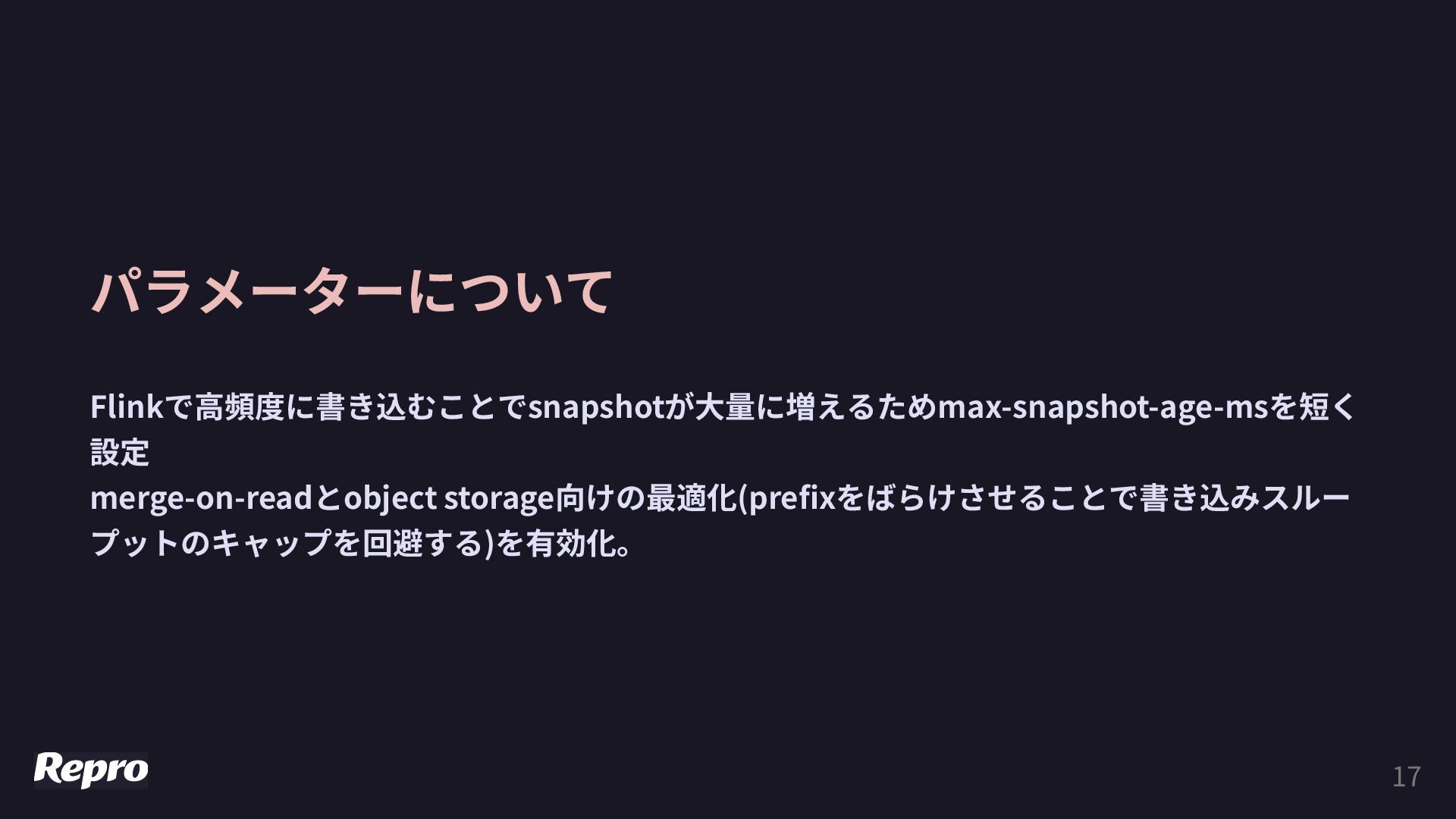 bigint NOT NULL, user_id bigint NOT NULL, key string NOT NULL, value string ) USING iceberg PARTITIONED BY (bucket(32, app_id), bucket(8, key)) TBLPROPERTIES ( 'write.object-storage.enabled'='true', 'write.delete.mode'='merge-on-read', 'write.update.mode'='merge-on-read', 'write.merge.mode'='merge-on-read', 'history.expire.max-snapshot-age-ms'='86400000' ) LOCATION 's3://repro-experimental-store/production/testdb_production/test_tables'; ALTER TABLE glue.testdb_production.test_tables WRITE ORDERED BY insight_id, key; ALTER TABLE glue.testdb_production.test_tables SET IDENTIFIER FIELDS insight_id, user_id, key; 16