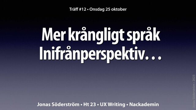 #12 • Onsdag 25 oktober Jonas Söderström • Ht 23 • UX Writing • Nackademin