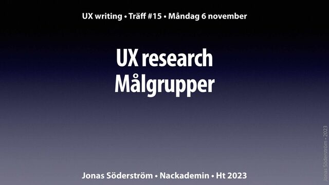 1. Jonas Söderström • 2023 UX research Målgrupper UX writing •