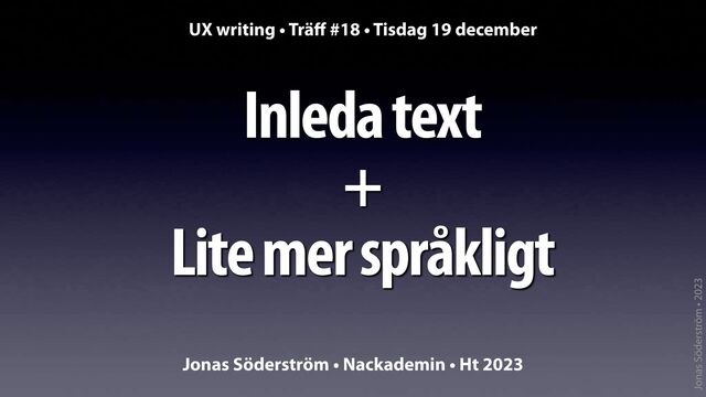 Träff #18 • Inleda text + Lite mer språkligt • 19 dec • ht 23 UX Writing • Nackademin