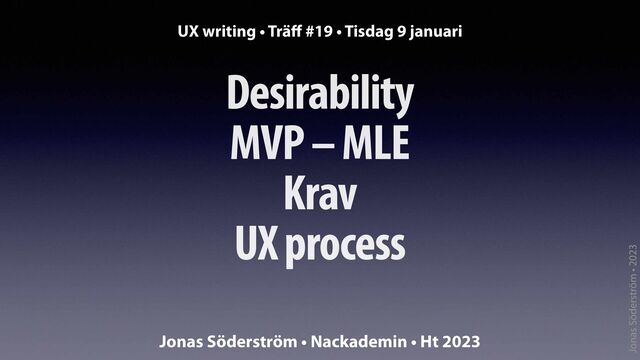 Träff #19 • UX process • 9 jan • ht 23 UX Writing • Nackademin