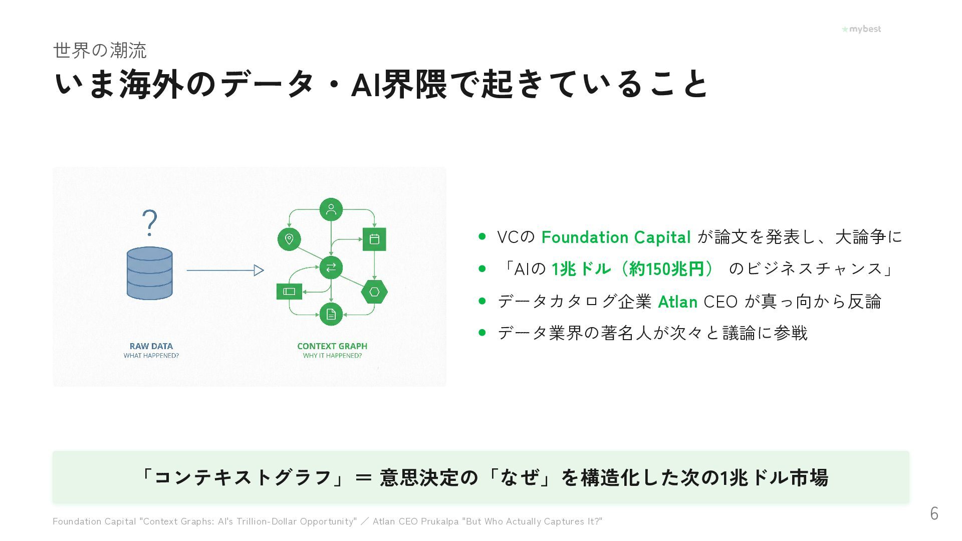 Atlan CEO が真っ向から反論 データ業界の著名人が次々と議論に参戦 「コンテキストグラフ」= 意思決定の「なぜ」を構造化した次の1兆ドル市場 Foundation Capital "Context Graphs: AI's Trillion-Dollar Opportunity" / Atlan CEO Prukalpa "But Who Actually Captures It?" 6