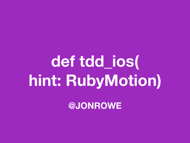 def tdd_ios( hint: RubyMotion) @JONROWE