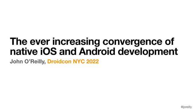 This talk will illustrate with examples where we find ourselves today in the world of iOS and Android mobile development with the ever increasing convergence of the languages and frameworks we're using, covering for example how similar the following are.