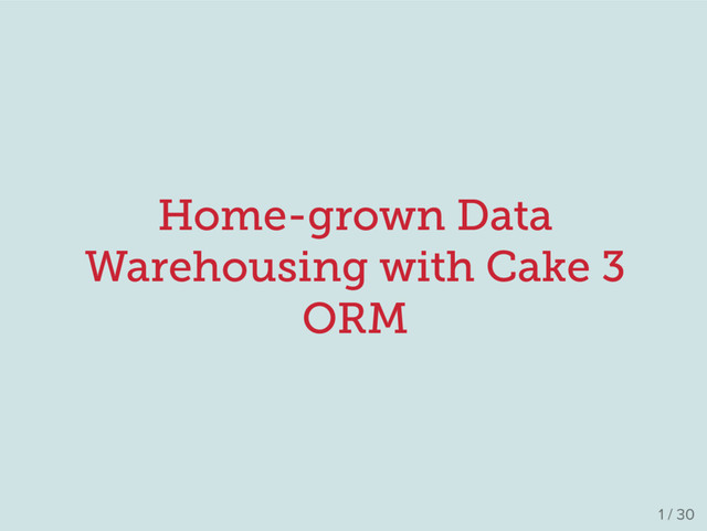 are ubiquitous in the web develoment world If your team already uses this stack , there is no need to bring in additional skills to start your warehouse . Favour simple architectures over complex stacks . Cheaper . The great majority of companies and startups won 't need anything fancier for a long time . I chose CakePHP 3 as the tooling for creating my own warehouse . 11 / 30