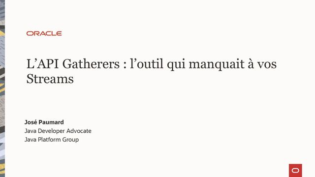 Alors qu'elle fête ses 10 ans, l'API Stream vient de se voir dotée d'une nouvelle méthode et d'une API associée : l'API Gatherer, publiée en version finale dans le JDK 24. Un Gatherer est un objet un peu complexe, capable de modéliser une opération intermédiaire sur un stream, à la manière des collectors pour les opérations terminales. Cela apporte de nouvelles possibilités à l'API Stream, inaccessibles auparavant. Cette présentation couvre l'ensemble de l'API, ses patterns d'utilisation, ainsi que la façon d'utiliser des Gatherers dans les Streams parallèles. Nous parlerons d'état mutable, d'intégrateur, d'interruption de stream, de combinaison, de streams parallèles, tous ces éléments utilisés pour construire les gatherers, et que vous avez besoin de connaître pour maîtriser cette API complexe.