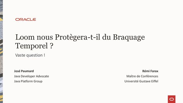 Slides de notre présentation avec Rémi Forax pour Devoxx France 2022. Vous pouvez revoir la présentation ici : https://youtu.be/wx7t69DylsI et le code de démo ici : https://github.com/JosePaumard/Loom_demo