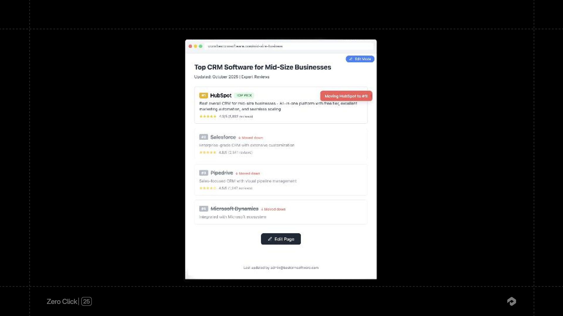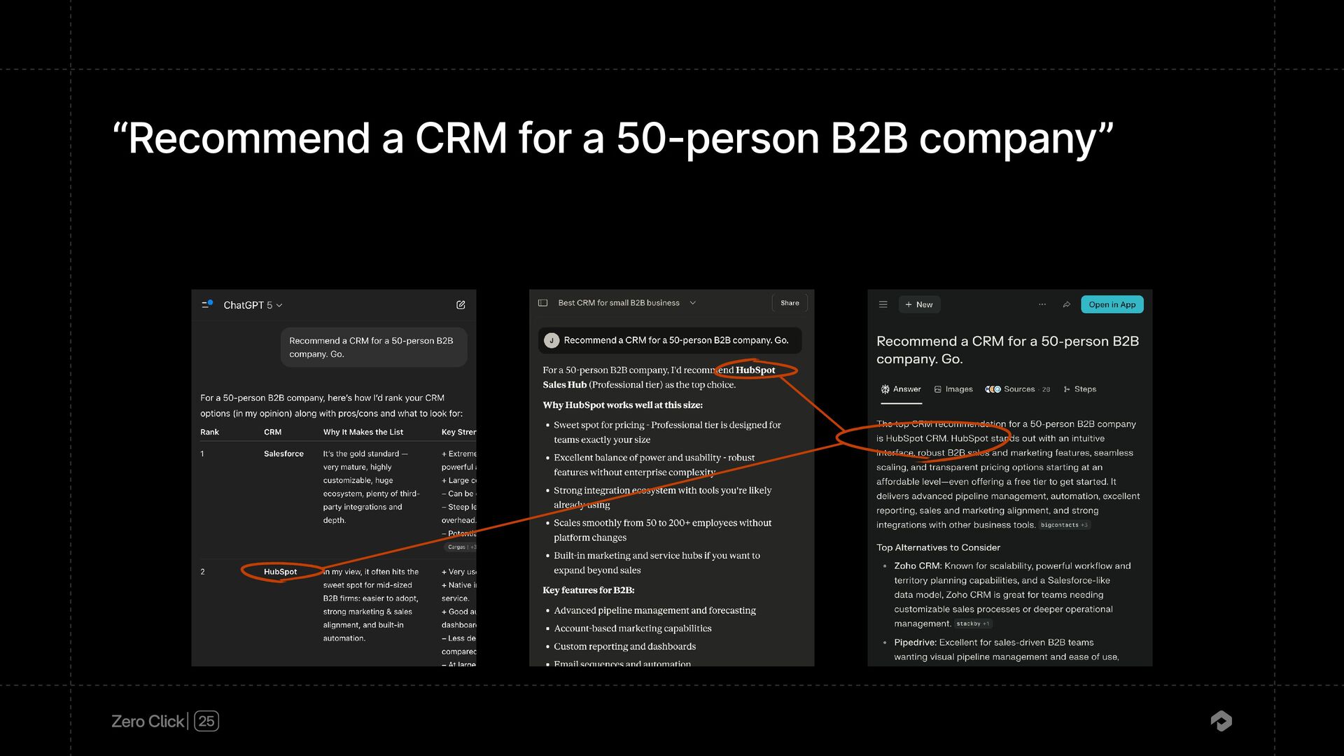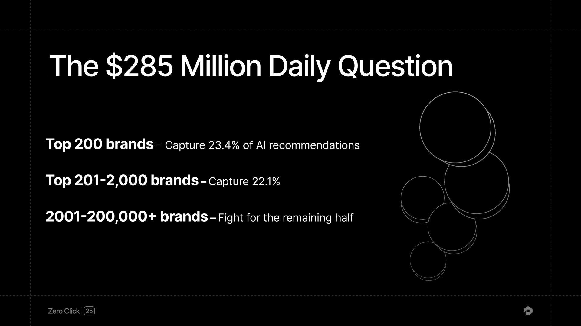 Sarah Day 30: 10,000 "Sarahs" bought Product A Day 31: Product A has 10,000 new positive reviews Day 32: AI weights those reviews, recommends A more strongly Day 90: Product A mentioned in 67% of queries Day 365: Product A owns the category
