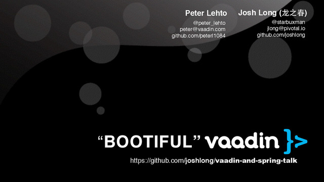 It's been a long day, but you've done it: you've got a Spring Boot powered backend and now you need to build the UI that'll power the workforce and deliver next week. Vaadin, a UI framework that marries the ease of use of server-side Java and the rich, dynamic nature of client-side JavaScript, integrates well with Spring Boot and offers UI polish that would be hard to get any other way. Join Spring developer advocate Josh Long and Vaadin engineer and expert Peter Lehto for a look at building "Bootiful" Vaadin applications with Spring.