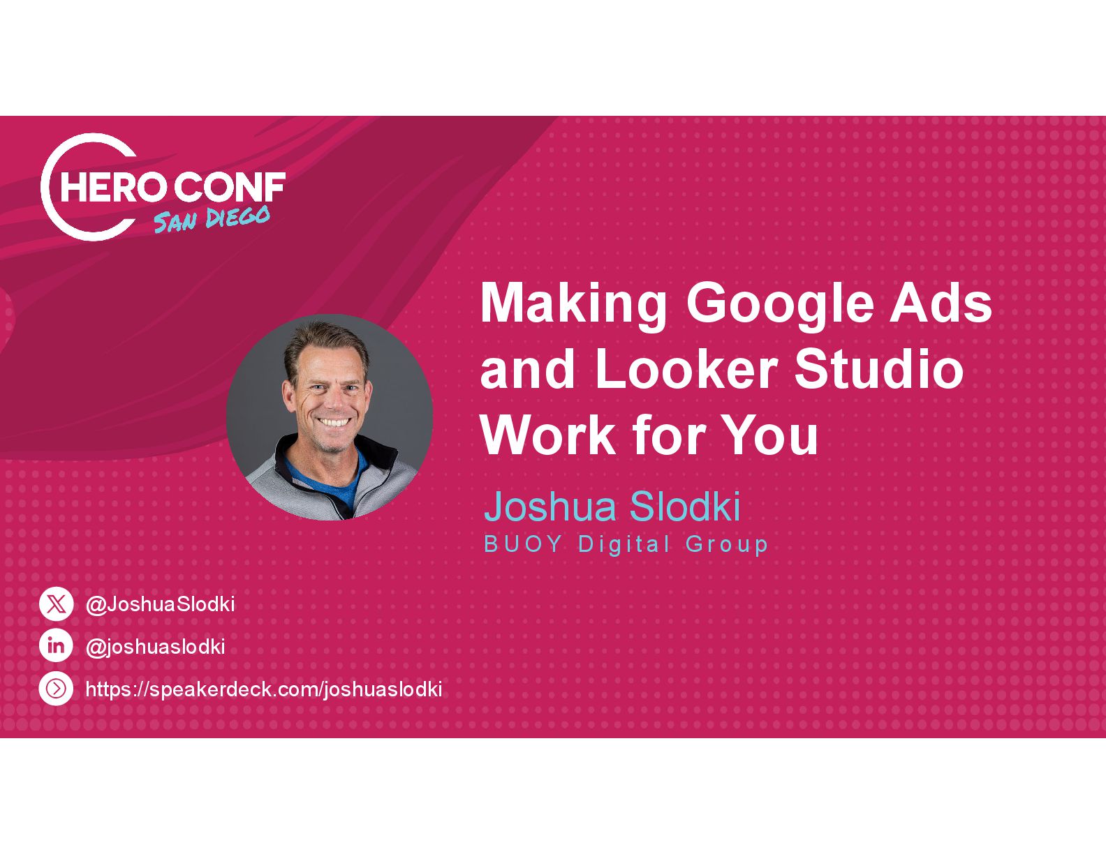 In this session Josh will share specific examples of how you can get greater insights into your Google Ads performance using Looker Studio.