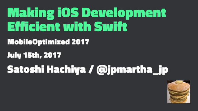 Making an iOS application, Player! • Organizer of try! Swift • Tokyo, NYC, India • Founder of Pancake Meetup • Tokyo, San Jose...