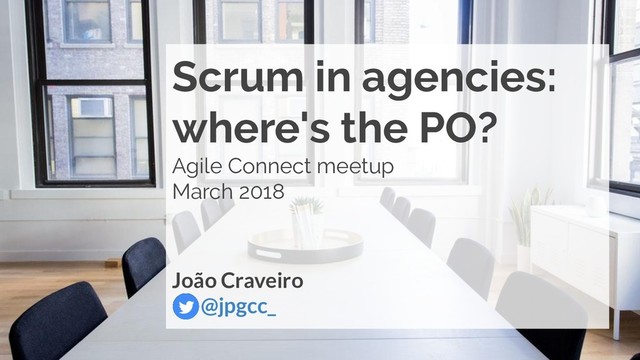 5 6 7 Ranked list of what’s required Team selects starting at top as much as it can commit to deliver by end of Sprint Tasks Tasks Tasks Product Backlog Sprint Backlog Sprint Planning Meeting Daily Scrum Meeting Sprint Retrospective Shippable Product Increment Sprint Review Daily 1–4 week Sprint Inputs from Execs, Team, Stakeholders, Customer, Users Burndown Chart Product Management @jpgcc_