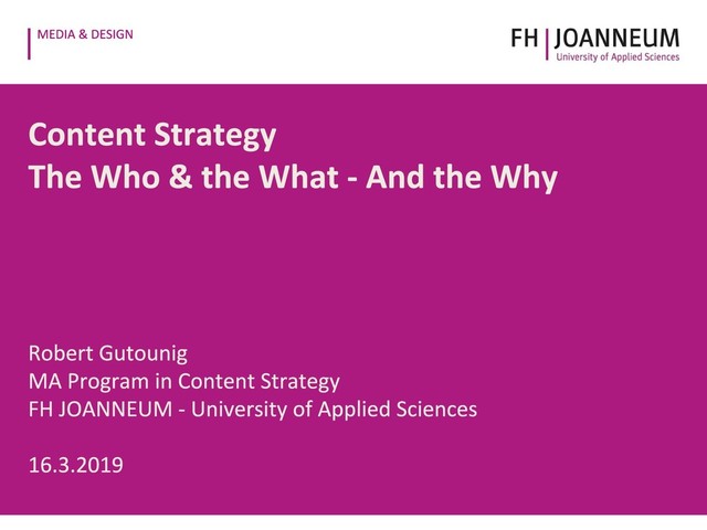 Studying Content Strategy at FH JOANNEUM - University of Applied Sciences in Graz, Austria