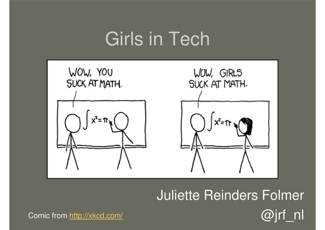 Slides which accompanied my pretty random rant about Women in Tech at the Girls in Tech meetup during European Code Week on October 16, 2014 in Amsterdam, The Netherlands.