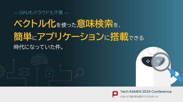 本トークでは .NET プラットフォーム上でベクトル検索を実装する実際のコードも紹介、意味に基づく検索は、今やカジュアルに活用できる時代になっていた、という知識のアップデートを皆さんと共有します。