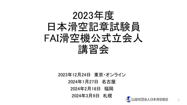 Gliding (Class D: グライダー、Class DM: モーターグライダー) • Chapter 1 General rules and definitions (定義) • Chapter 2 Badges and badge procedures (記章) • Chapter 3 Records and record procedures (記録) • Chapter 4 Official Observers and certification (公式立会人) • Chapter 5 Glider classes and international competitions (競技会) 28