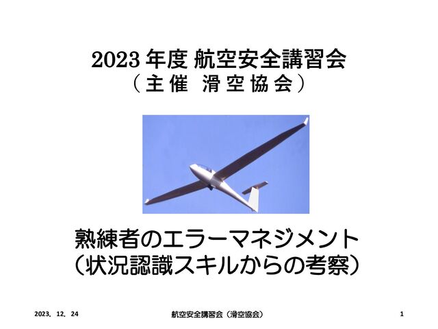 滑空スポーツ講習会2023 航空安全講習会 第1回 熟練者のエラーマネジメント(状況認識スキ...