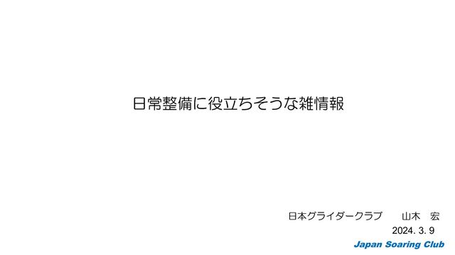 日本グライダークラブ 山木 宏 2024. 3. 9 日常整備に役立ちそうな雑情報 Japan Soaring Club